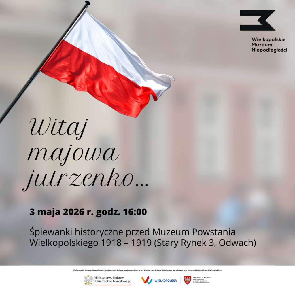 Z okazji Święta Konstytucji 3 Maja zapraszamy na wspólne plenerowe śpiewanki historyczne przed Odwachem. O oprawę muzyczną wydarzenia zadbają artyści z Akademii Muzycznej w Poznaniu. Wśród wykonywanych pieśni pojawią się m.in. „Przybyli ułani pod okienko”, „O mój rozmarynie”, „Naprzód Poznański Pułku Pierwszy” czy  „Marsylianka Wielkopolska”. Zaśpiewajcie razem z nami!