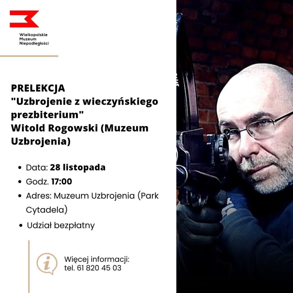 W ramach wydarzeń towarzyszących wystawie czasowej „Depozyt z wieczyńskiego prezbiterium” zapraszamy na wyjątkowe spotkanie z Witoldem Rogowskim, pracownikiem Muzeum Uzbrojenia, znanym i cenionym specjalistą w dziedzinie broni palnej, a zarazem jednym z autorów wystawy.